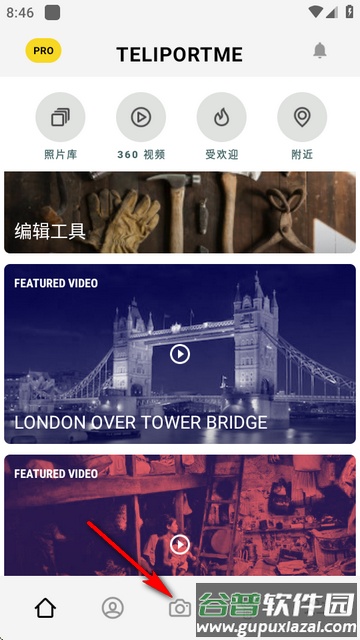 1、下载并安装软件,打开后点击界面中央的相机按钮。