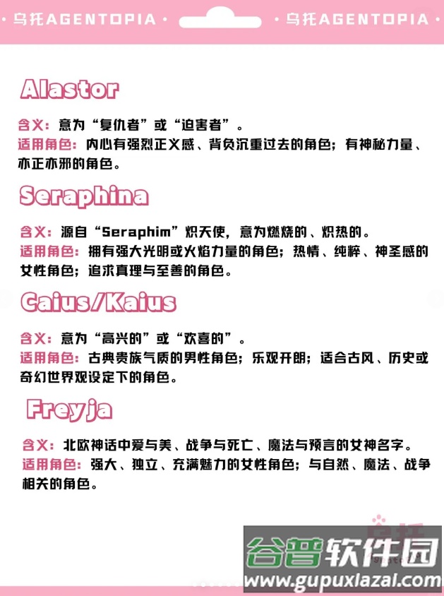 这里整理了一批适合原创角色的英文名,并附带了性格参考。如果你正在为角色取名而困扰,或许可以从中获得灵感。