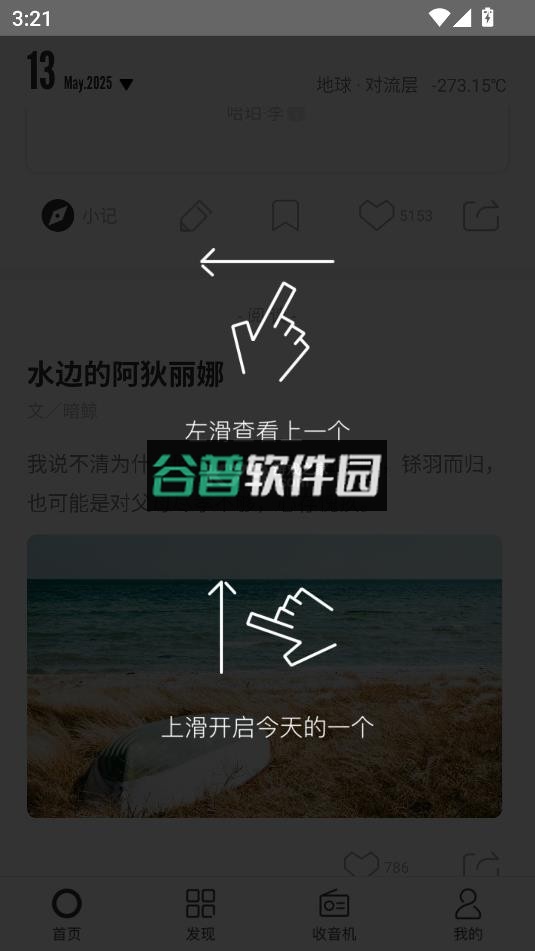 该应用由韩寒监制,其文艺风格让许多用户爱不释手。你可以随时阅读一种心情或短篇故事,在这里找到属于自己的精神角落。它主要构建了一个手机上的内容平台,每天为你推送一位作者的好文章、一组好图片,还有一个可以自由提问的问题。