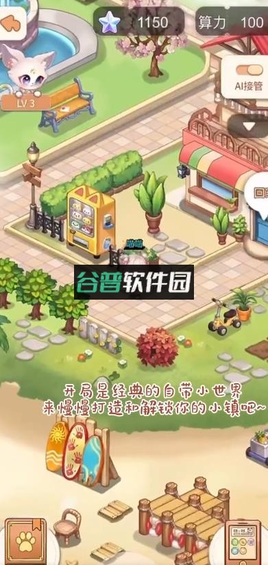 2.初始会拥有一个基础的小世界,你可以逐步建设和解锁小镇区域;