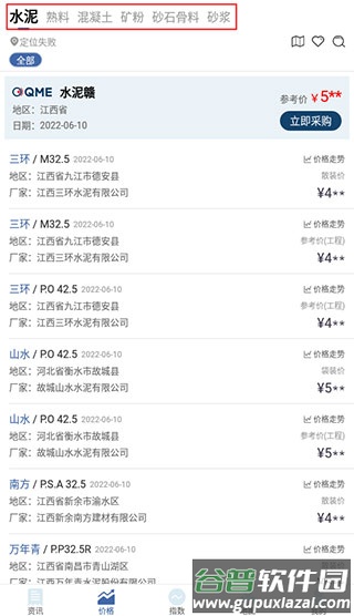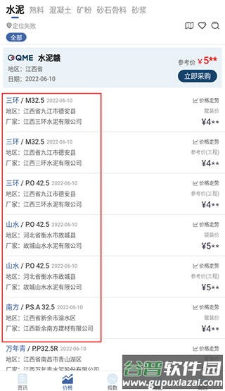 3. 根据当前位置或手动选择地区,查看相应区域的水泥价格。