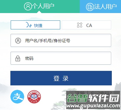 (一)个人登录:在登录页面点击“个人用户”后,可通过两种方式登录;1.快捷登录,使用账号、身份证号或手机号配合密码登录;2.CA登录,请确保UKey已插入电脑,若未安装驱动请先点击登录页面链接下载对应驱动。