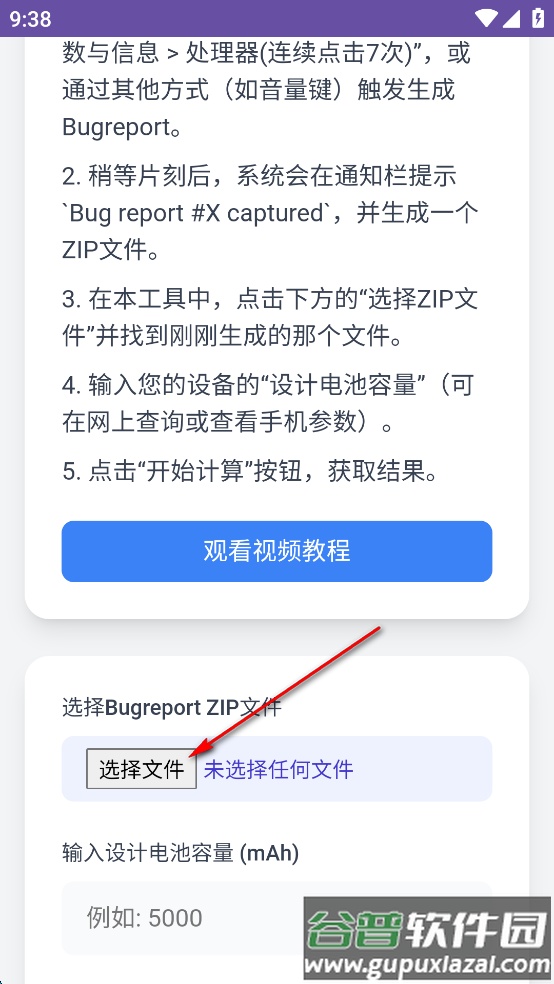 打开本应用;点击【选择Bugreport ZIP文件】,在文件管理器中找到刚生成的ZIP包。