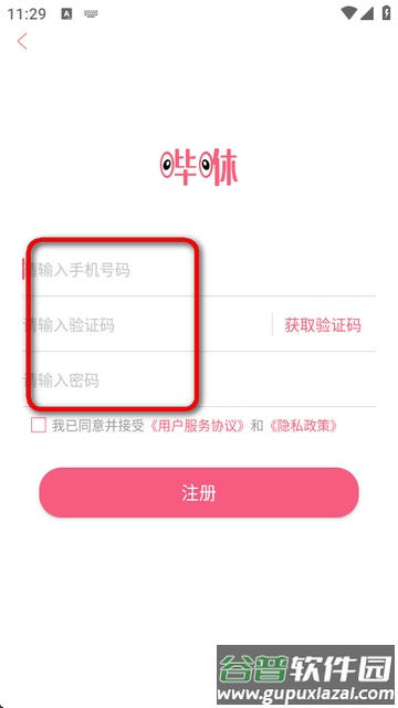 3、输入手机号码,获取并填写验证码,设置登录密码。