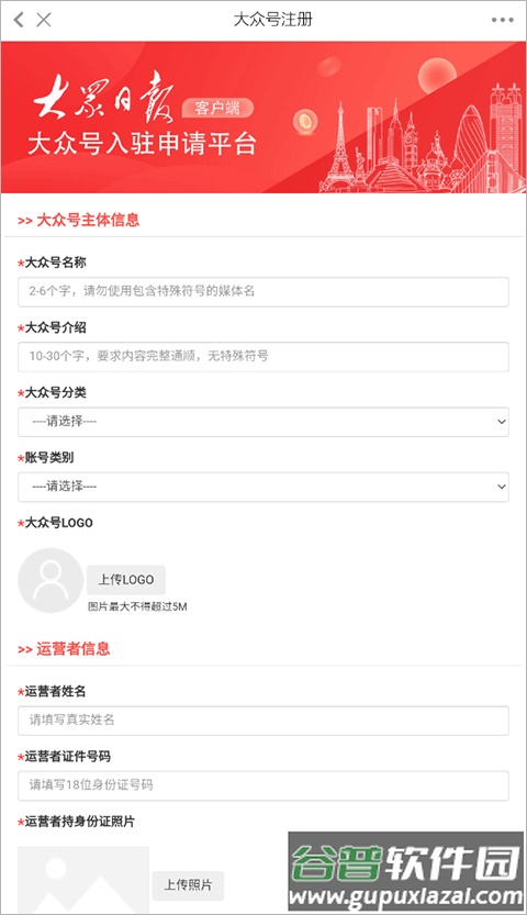 2、在申请界面填写主体信息、运营者信息及运营主体信息,填写完成后提交入驻申请,等待审核。