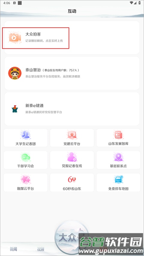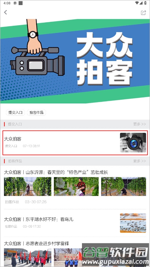 2、进入拍客界面后,点击“大众拍客-提交入口”。
