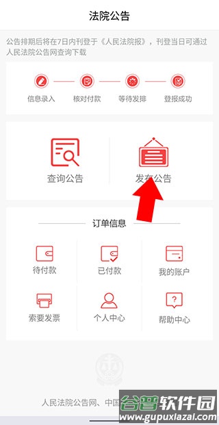 1、下载并注册登录软件,在下方界面点击发布公告按钮。