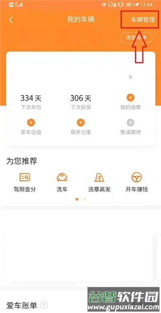 在我的车辆页面,点击右上角的【车辆管理】。