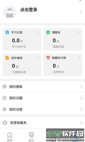 5、在我的板块中,可以查看个人学习记录、错题本、刷题排行榜以及学习进步曲线等信息。