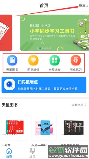 2、在首页,你能找到图书增值、全部试卷、考点联系等功能,还能按年级筛选内容;