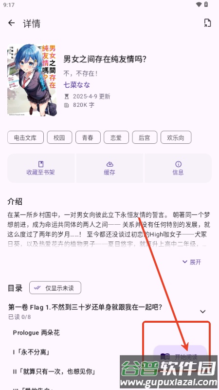 4、在详情页点击阅读按钮,即可开始浏览小说内容。