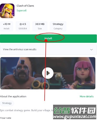 1、找到你想下载的软件,比如部落冲突国际版,点击进入详情页;