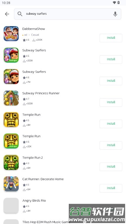 2、输入你想找的软件英文名称,例如想找地铁跑酷国际版,就输入“Subway Surfers”;