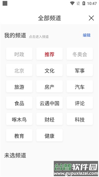 2、在频道列表中选择自己感兴趣的内容分类;