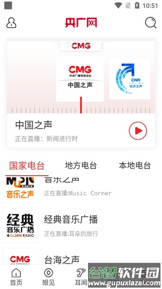 6、“电台”板块集合了各地广播节目,喜欢收听电台的用户可以在此找到所需内容;