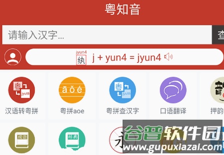 3、粤拼查同音字:通过拼音查找对应汉字,支持全拼组合及带声调的精确检索;