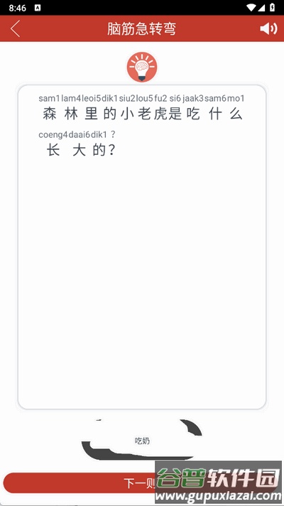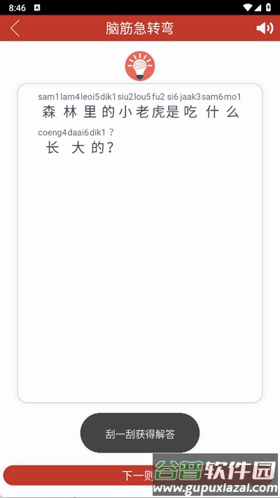 2、例如进入脑筋急转弯环节,在题目下方区域刮动屏幕;