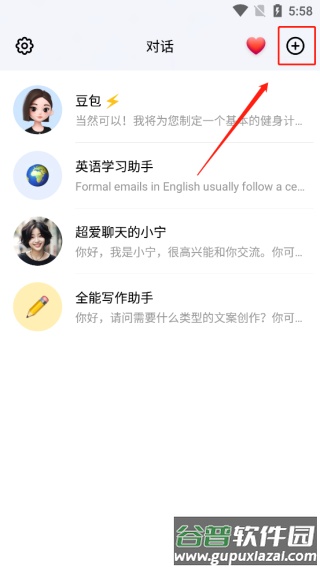1、打开豆包应用首页,点击界面右上角的加号图标。