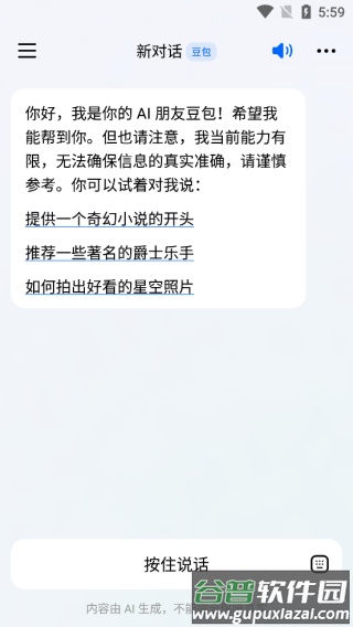 1、登录账号后,可直接在下方使用语音输入功能与豆包交流。