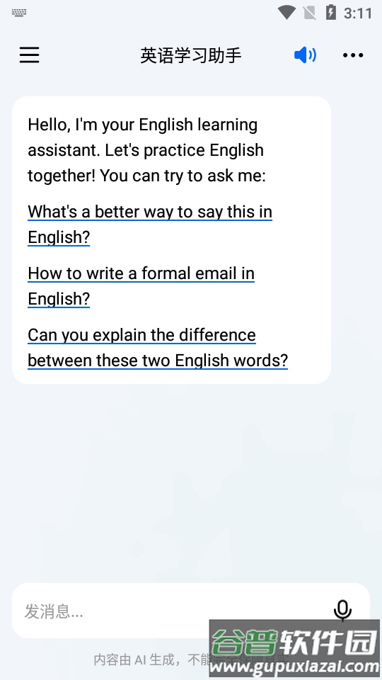 2、软件不仅提供AI对话,还集成了英语学习与写作辅助等实用工具。