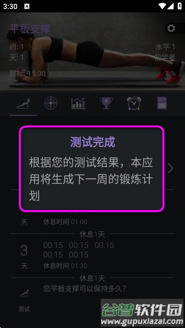 6、测试完成后,应用会根据你的情况生成定制化的锻炼计划。