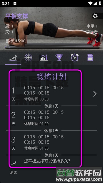 4、提供30天腹肌专项计划,帮助用户塑造腹部线条;