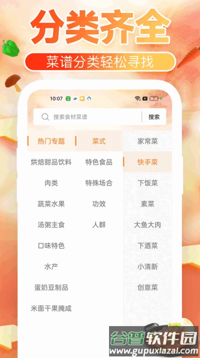 1、菜谱分类细致:依据菜系、口味、主要食材和烹饪方式等维度进行分类,帮助用户快速定位心仪菜谱;从中餐、西餐到日韩料理,乃至烘焙甜点,各类美食应有尽有。