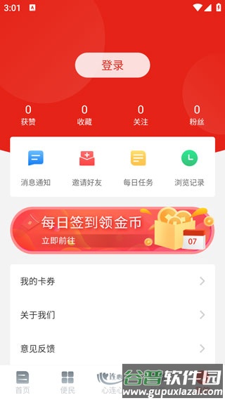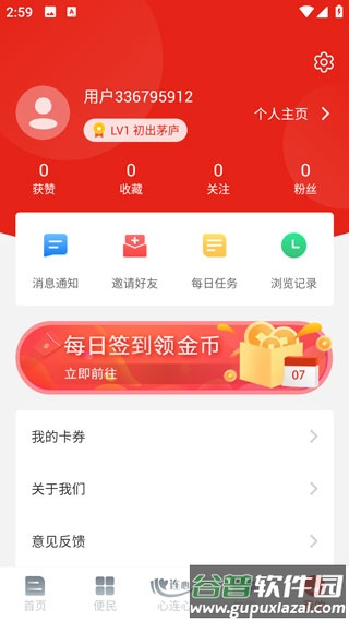 1.点击应用右下角“我的”入口,进入个人中心页面。