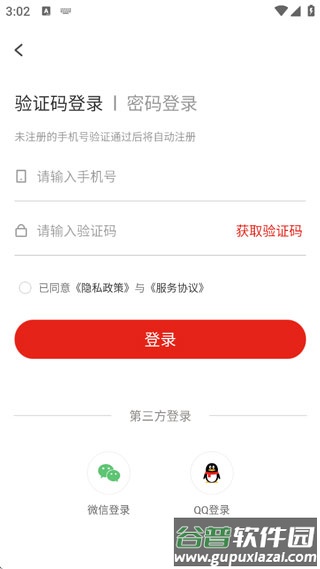 2.点击“登录”按钮,输入手机号码即可完成注册;也支持使用微信、QQ等第三方账号快捷登录。