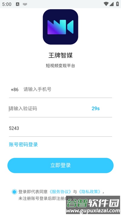 2、在登录界面输入您的手机号码、收到的验证码以及邀请码即可成功进入。