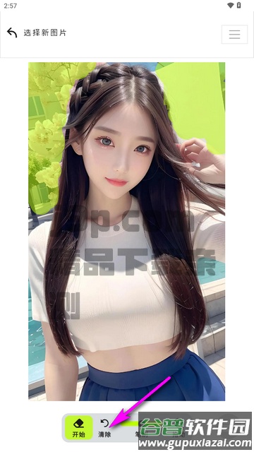 5、选择完成后点击“开始”按钮,AI会自动进行图像处理;若效果不满意,可点击清除按钮重新选择。