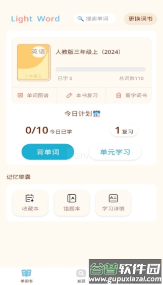 1、打开应用后,首先挑选适合自己阶段的单词书,随后制定每日学习计划;