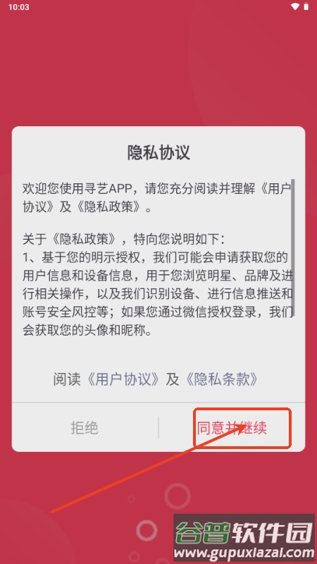 2、打开应用后,阅读并同意相关用户协议;