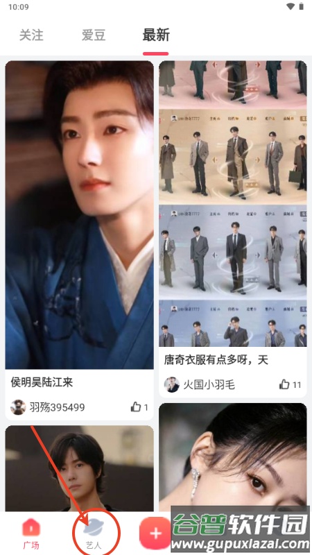 1、在应用底部导航栏找到并点击“艺人”栏目;