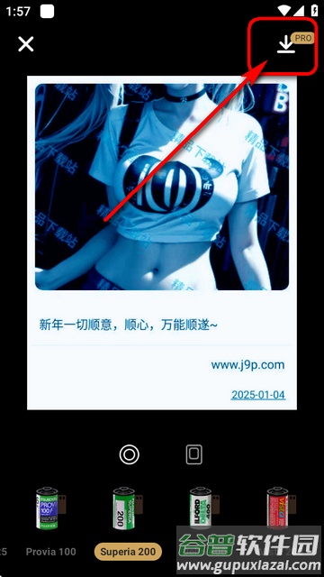 5、左右滑动可随意切换滤镜,选定后点击右上角的下载图标。