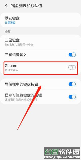 2、进入设置界面,跳转至系统键盘管理,开启谷歌键盘开关后返回。