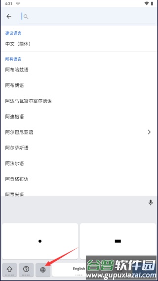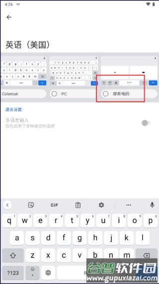 7、返回输入界面,此时键盘语言仍为英语(美国),点击左下角地球图标即可切换至摩斯电码模式。