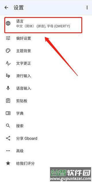 3、此时可见键盘基本设置项,点击顶部的语言选项进入。
