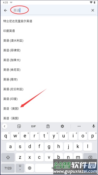 5、输入英语关键词,选择列表中的英语(美国)。