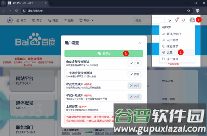 3、进入网页后根据指引完成个人用户设置。