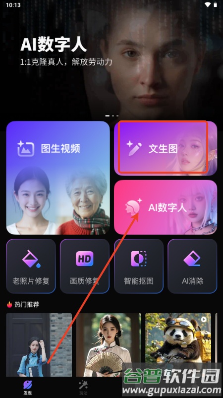 1、在软件主界面,根据需求选择功能,例如图生视频、文生图片或AI数字人;
