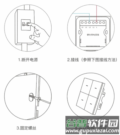 添加设备步骤:开关接通电源后,快速按压任意按键五次,随后长按约三秒,待按键指示灯开始闪烁;此时打开应用扫描设备二维码,依照界面提示完成添加。