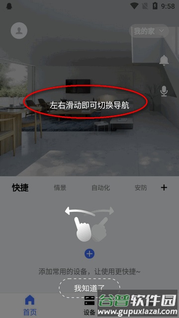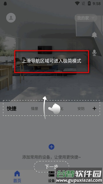 6、首页会显示操作引导,上滑屏幕可切换至极简模式;