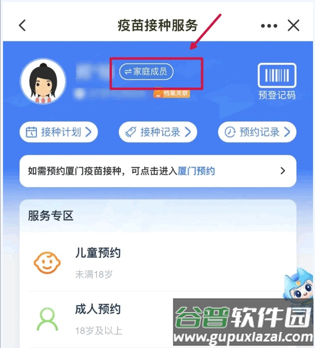 4、已完成建档的用户可在“服务专区”选择疫苗服务;该功能支持添加最多5位家庭成员,便于统一管理家庭健康。