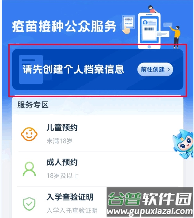 3、点击进入服务页面,按照提示填写个人信息完成建档。