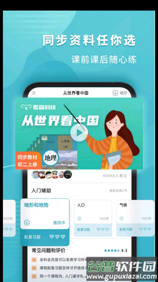 收录了针对初中地理各知识点的教学视频,与教材章节同步,讲解细致全面。提供高清视频解析,用户只需戴上耳机,随时都能进入学习状态,让复习时光充满乐趣。