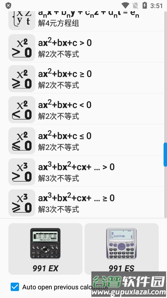 3、991科学计算器为学生准备了多种工具,例如求最小公倍数、最大公约数、生成随机整数以及求解方程;