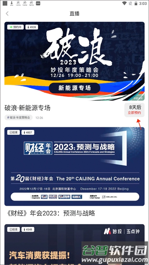 2. 页面展示已结束的直播列表,选择你想预约的直播并点击“立即预约”。