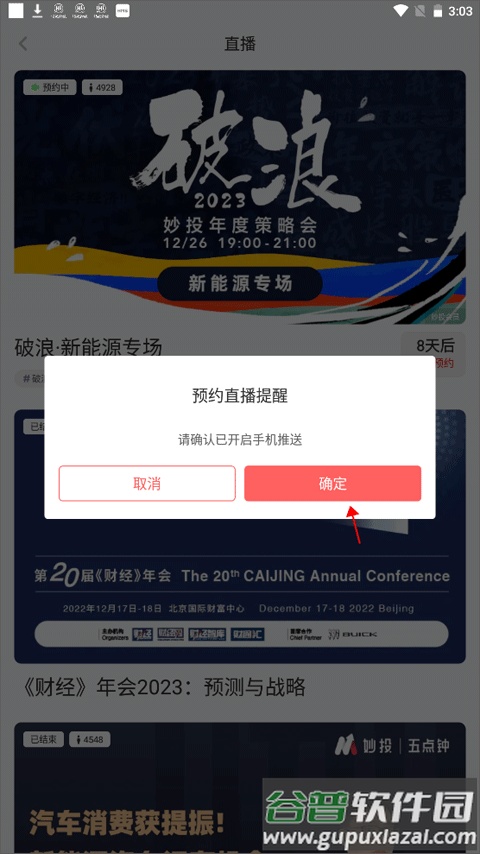 3. 应用将弹出预约直播提醒窗口,点击确定即可完成预约,等待直播开始。
