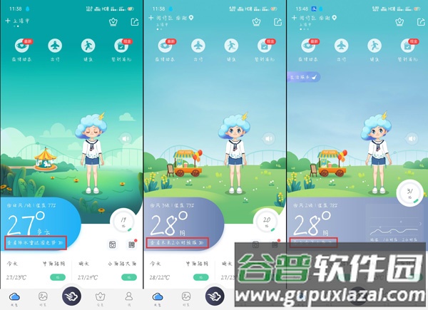 2. 该入口文字会根据未来几小时的降水概率动态变化,如下雨前会显示“马上会下小雨”。